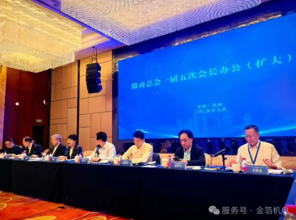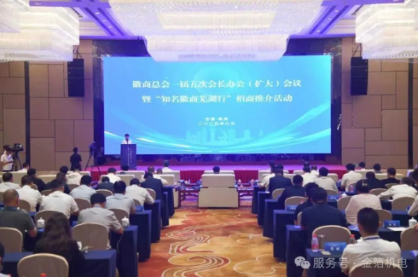 9月18-19日,徽商总会一届五次会长办公(扩大)会议暨“知名徽商芜湖行”活动在芜湖成功举办。安徽省人大常委会副主任、省工商联主席王翠凤出席活动并讲话。“知名徽商芜湖行”招商推介活动环节,芜湖市委书记宁波致辞;芜湖市委副书记、市长徐志;省工商联党组成员、副主席,徽商总会党委书记、副会长兼秘书长李俊波等参加。南京金箔控股集团董事局主席江楠率集团董事、金箔机电集团董事长孙敏亮,总裁程鼎奎,副总裁韩静参加会议活动。